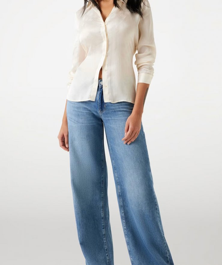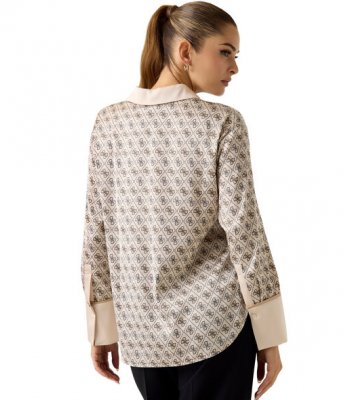 Guess γυναικείο πουκάμισο σατέν με all over Logo print.